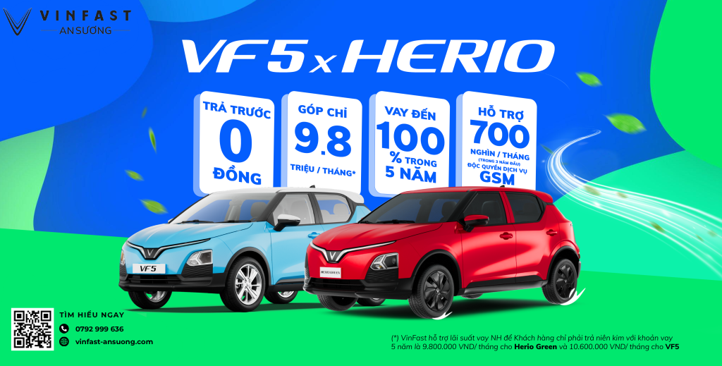 - Sở hữu xe điện thông minh, tiết kiệm và thân thiện môi trường: Herio Green và VF 5 đều là những mẫu xe điện nhỏ gọn, hiện đại, phù hợp với đô thị và xu hướng “xanh hóa” phương tiện.
